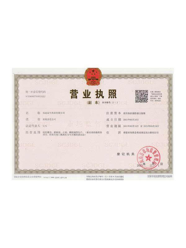 福建延年藥業(yè)有限公司位于福州市閩清縣城關(guān),工廠坐落在風(fēng)景秀美的梅城森林公園山腳下,公司前身是中國(guó)人民解放軍第9747工廠,創(chuàng)辦于1970年9月,隸屬南京軍區(qū)總后勤部,企業(yè)的地方名稱為福建閩清制藥廠。1998年6月為貫徹中央關(guān)于軍隊(duì)不再從事經(jīng)商活動(dòng)的決議,企業(yè)軍轉(zhuǎn)地改制移交地方,2001年9月企業(yè)改制,更名為福建延年藥業(yè)有限公司。